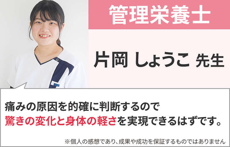 そこで、誰でも簡単にできるストレッチや栄養面のワンポイントアドバイスをさせていただき、今後痛みやリバウンドなどが再発しにくい身体作りを手助けさせていただきます。