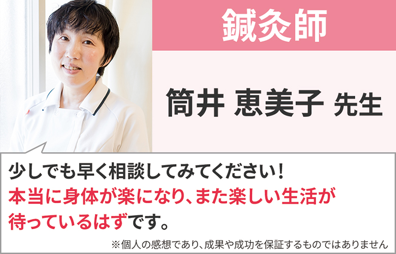 そのおかげで、日ごろの痛みに怯えることがなく改善までの期間も安心して生活できました。