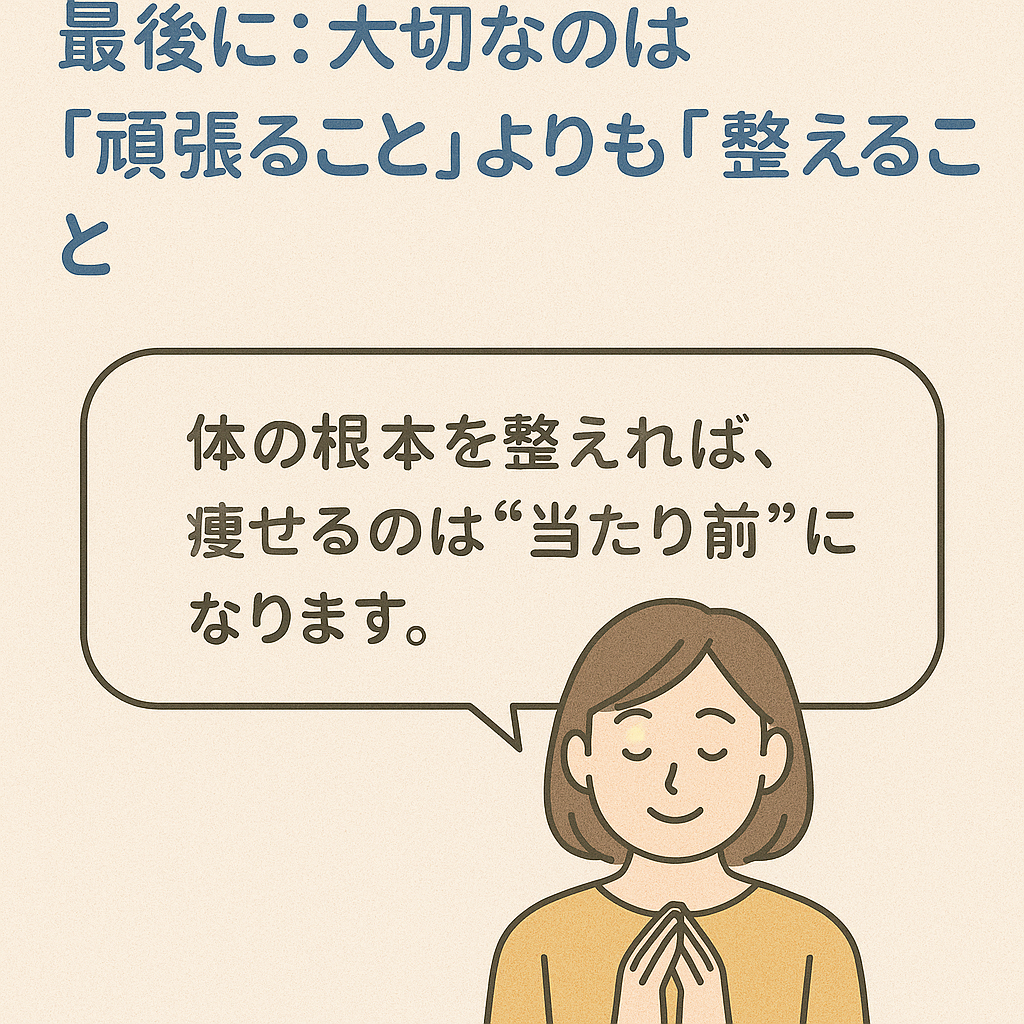 これらはどれも「代謝の低下」につながり、どんなに頑張っても**体が“痩せたくない状態”**になってしまっているんです。