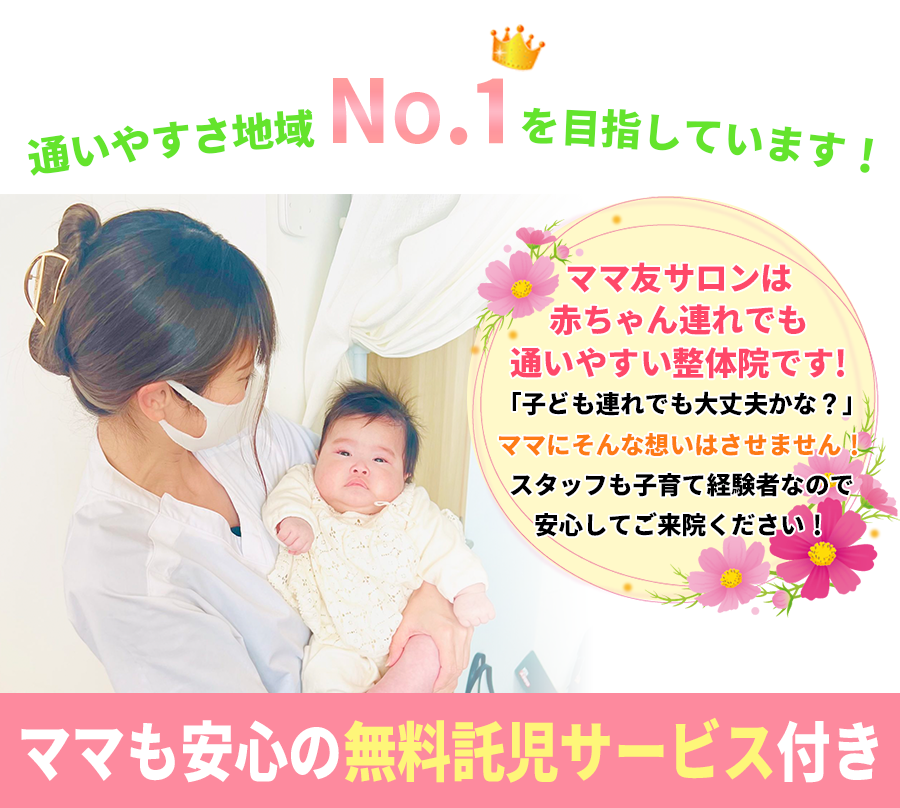 小さなお子様を連れての来院は非常に大変なもの…ママ友サロンでは、お子様とお母様の負担をなるべく軽減するため短時間の施術をしております。