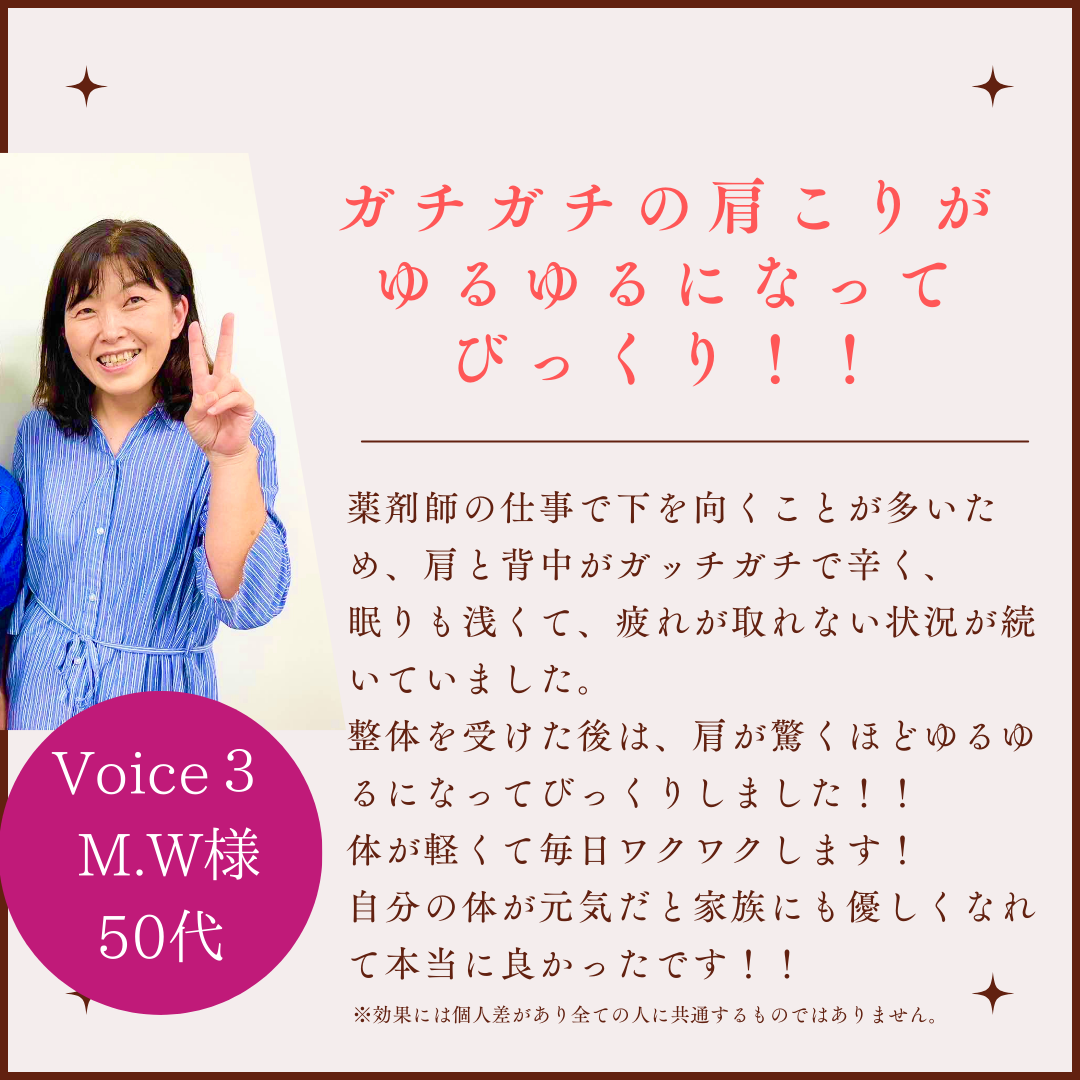 ボキボキしないギューギューしない、ソフトな施術なのに変化を実感できます。